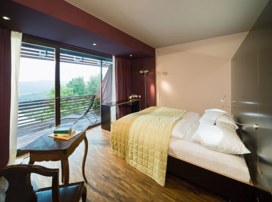 Du wohnst im Brombeer Zimmer auf 30m², genießt die Ruhe und das Panorama schon vom Bett aus.
