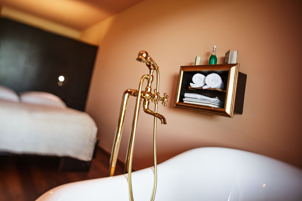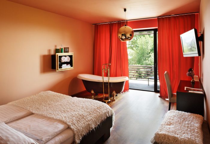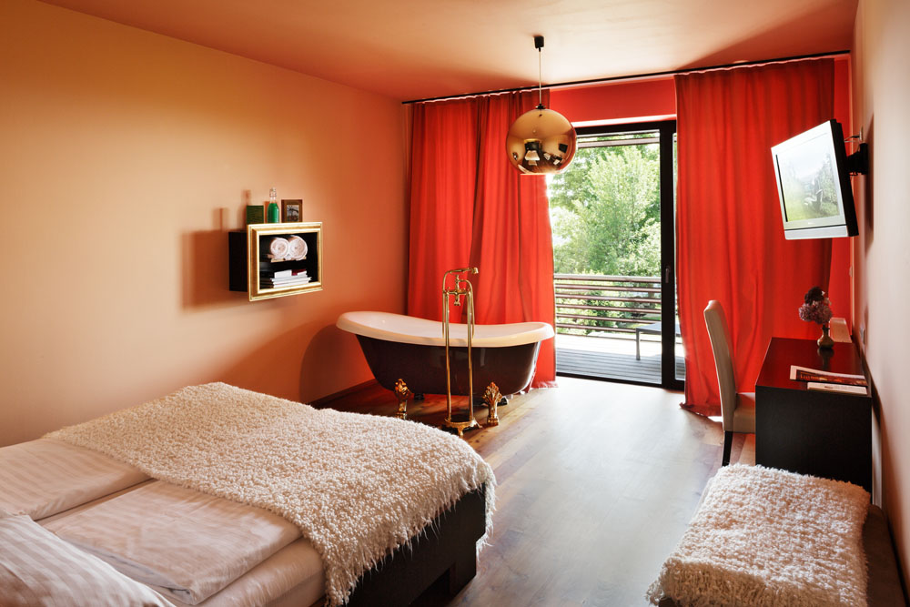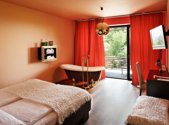 Die freistehende Vintage Badewanne gibt diesem Zimmer einen zusätzlichen romantischen Kick. Probiere es aus! Diese wohlig warme Suite bietet genügend Platz auf ca. 30m².