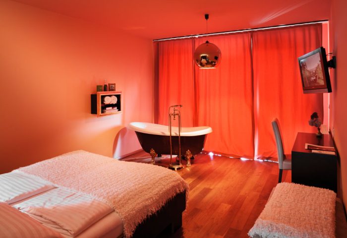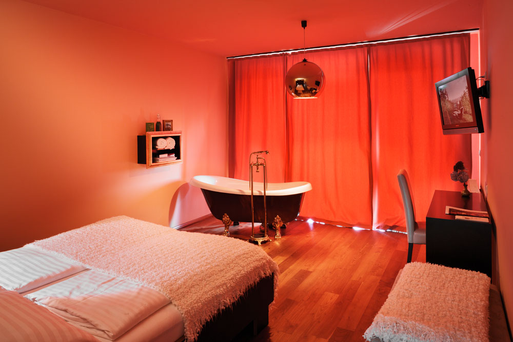 Bei der Wahl dieses Zimmers solltest du auf Rosésekt stehen, nicht auf Rot und nicht auf Weiß.
